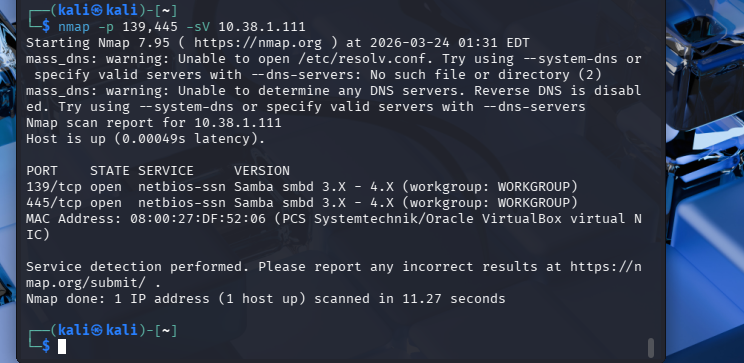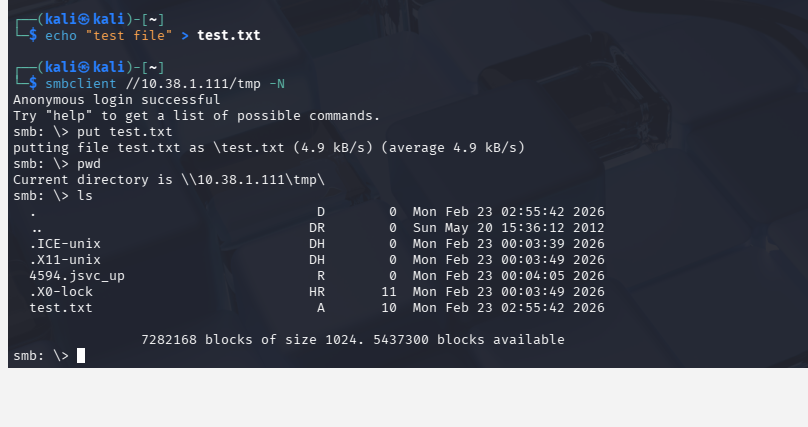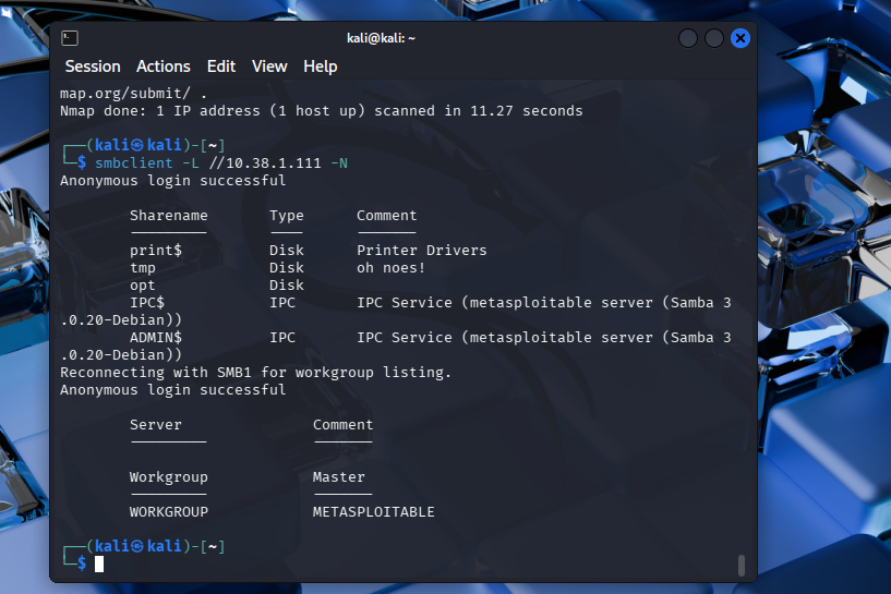 I used Nmap to identify SMB services and smbclient to enumerate shares. Anonymous login